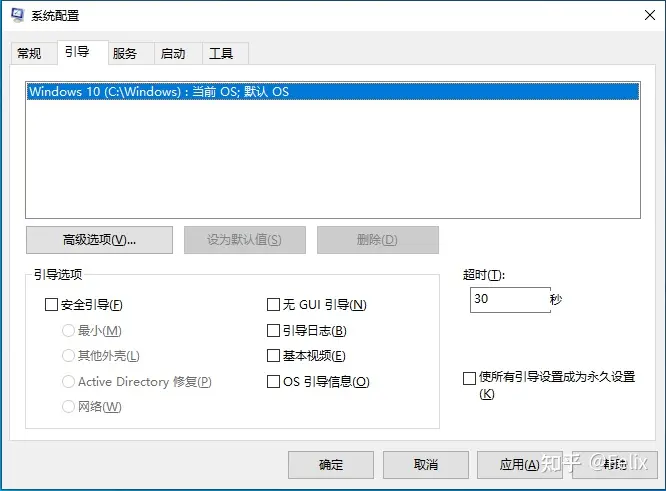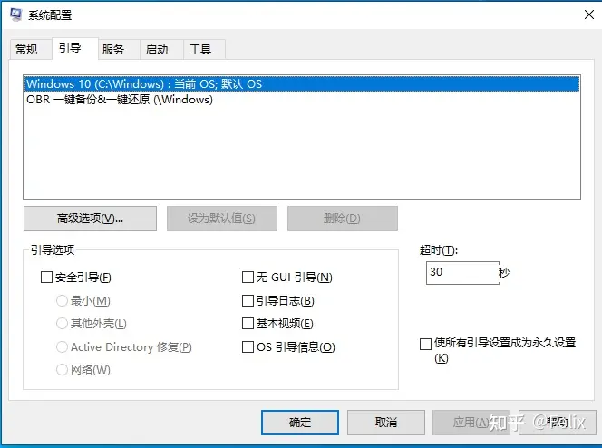 注:“超时”等其他地方都不需要设置,因为只有一个引导的时候,都不需要去选择,直接从唯一的引导进入系统